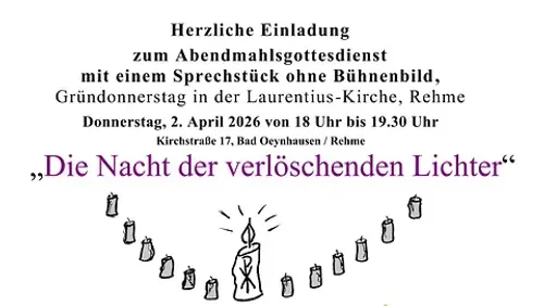 Unter diesem Thema steht der Abendmahlsgottesdienst mit Verkündigungssprechstück am Gründonnerstag 2. April 2026 um 18 Uhr in der Laurentius-Kirche, Kirchstr. 17 in Bad Oeynhausen-Rehme